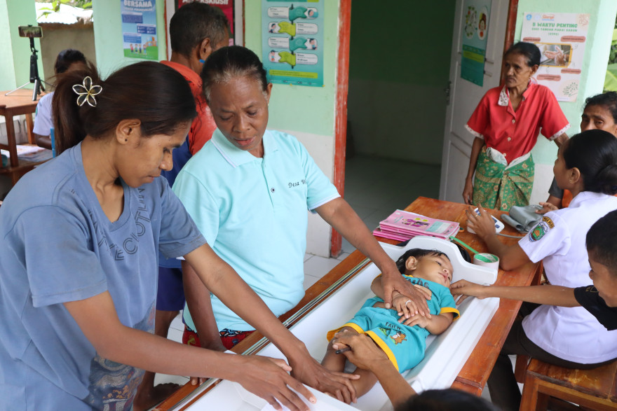 Pada Posyandu kali ini, tenaga kesehatan memberikan perhatian khusus kepada dua kelompok rentan: